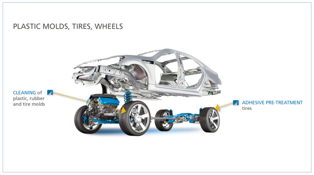 Limpieza de moldes de plástico, goma y neumáticos o el pretratamiento adhesivo para neumáticos.
