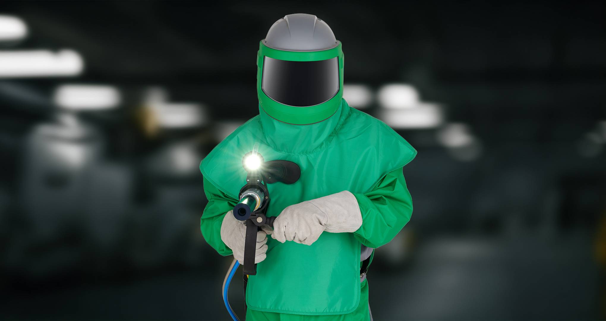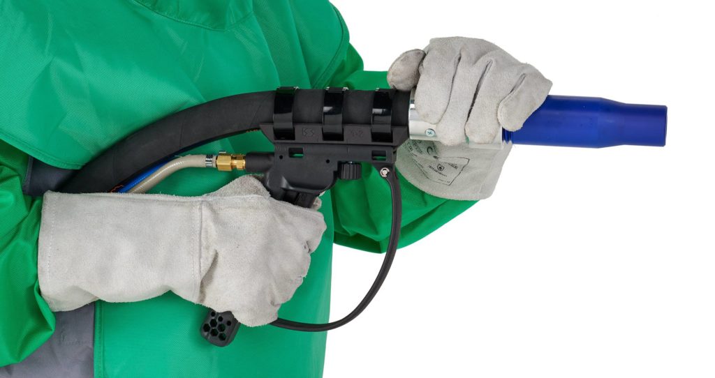 El mango giratorio tipo pistola, junto con accesorios dedicados, aumenta el control del proceso y permite una postura más cómoda, con máxima libertad de movimiento. Eso se traduce en menos fatiga, más producción y mejores resultados de chorreado.