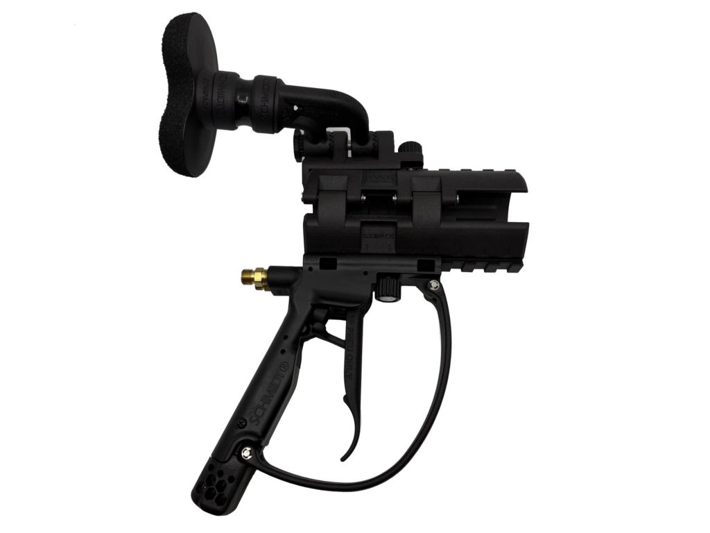 Para trabajos pesados y chorreados de larga duración, el G3+ ProGrip con sistema Rail se sujeta firmemente a la manguera de chorreado, gira con suavidad y viene con un Thrustpad. Esto transfiere el retroceso de la boquilla al cuerpo, reduciendo la fatiga. Se puede colocar un mango adicional opcional para un agarre y una comodidad óptimos. Adecuado para mangueras de chorreado de 1« y 1¼».
