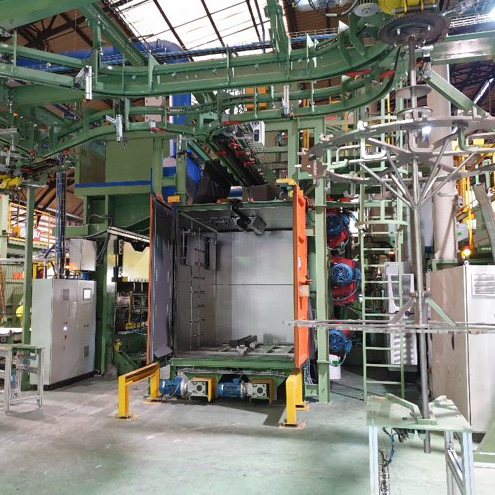 Este tipo de instalación suele integrarse en líneas completas junto a otros procesos como pintura, tratamiento térmico o enjuague.
