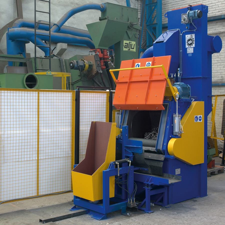 Se trata de la familia más compacta dentro de las granalladoras de tambor metálico, con una cámara de granallado en forma de cilindro abierto por su parte superior. Esta gira de forma continua, haciendo rotar las piezas en su interior mientras reciben el impacto de la granalla proyectada, garantizando un tratamiento uniforme.