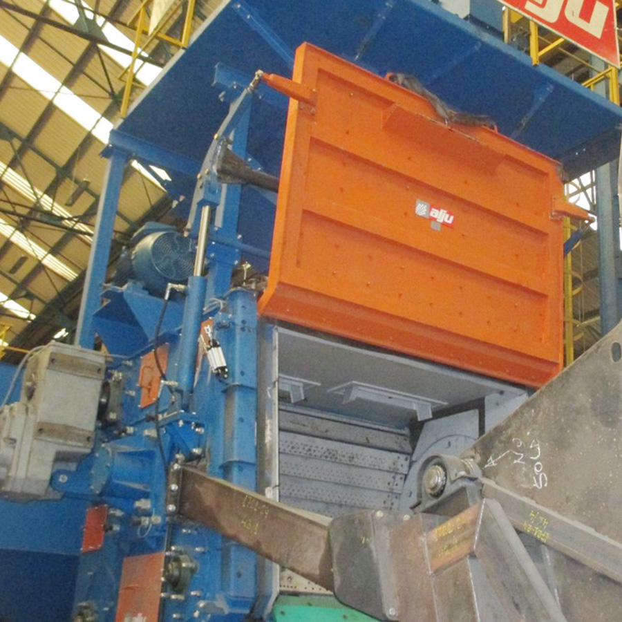 Las granalladoras ALJUTROM cuentan con una cámara de granallado en forma de cilindro horizontal, abierta en su parte superior a modo de cuna. Esta realiza giros alternativos que provocan el movimiento constante de las piezas, asegurando que todas sus caras queden expuestas al impacto de la granalla proyectada por la turbina.