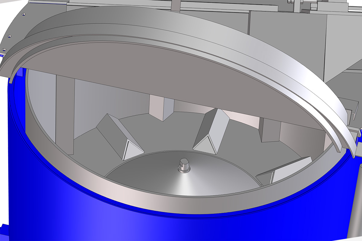 • Cargador automático de piezas, accionado manualmente, por volumen o mediante sistema de pesaje automático, que activa la carga al alcanzar el nivel predefinido.