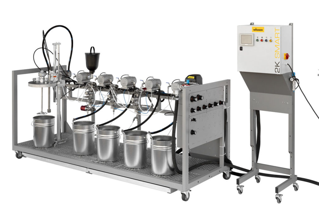El sistema completo listo para conectar WAGNER 2K Smart C se entrega con todos los componentes preinstalado (completamente documentado, con declaración CE) y ofrece un „solución completa sin preocupaciones“ para los procesos de preparación, alimentación y mezcla en pintura líquida.