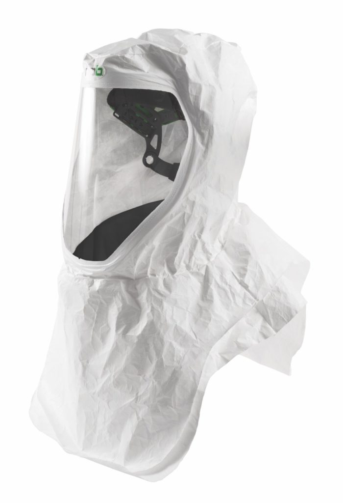 - Tres estilos de capucha Tychem™ disponibles: con sellado facial, con sellado facial hasta los hombros y hasta los hombros.