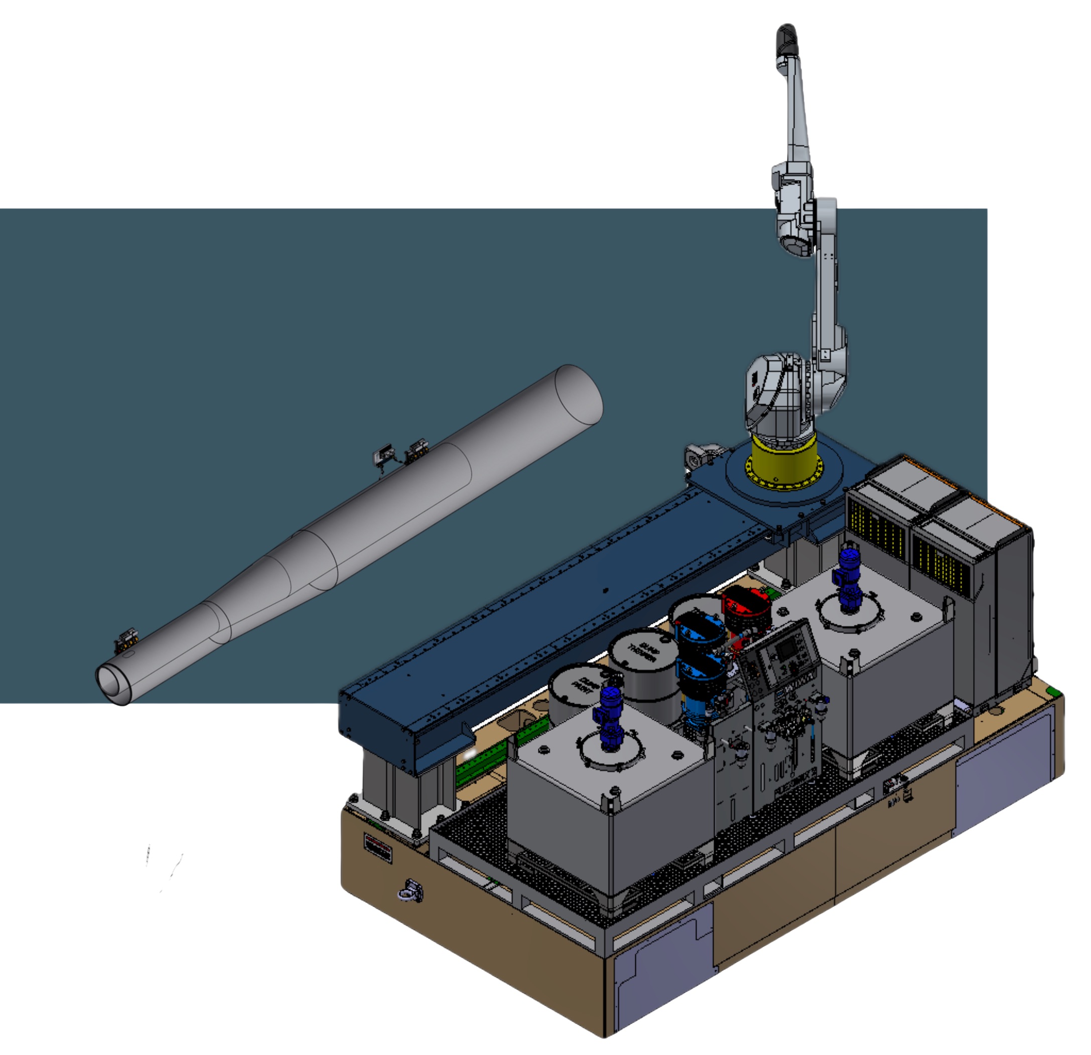 Existen múltiples configuraciones para adaptarse a cada proceso, incluyendo robots sobre raíles en el suelo o pared, como sobre AGV para la pintura exterior e interior de monopiles.