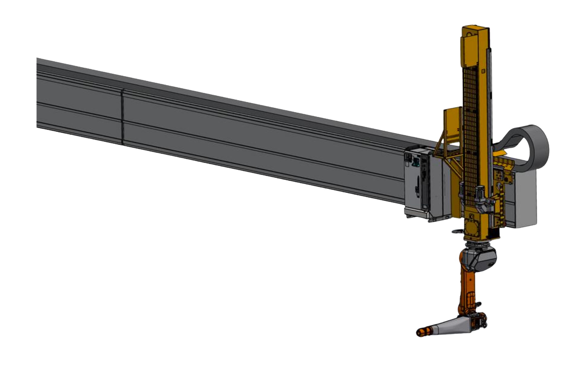Los robots de pórtico combinan su estructura robusta con el mismo escaneo 3D y auto-programación, eliminando la necesidad de alinear manualmente la pieza y ofreciendo máxima flexibilidad en cabinas de gran tamaño.