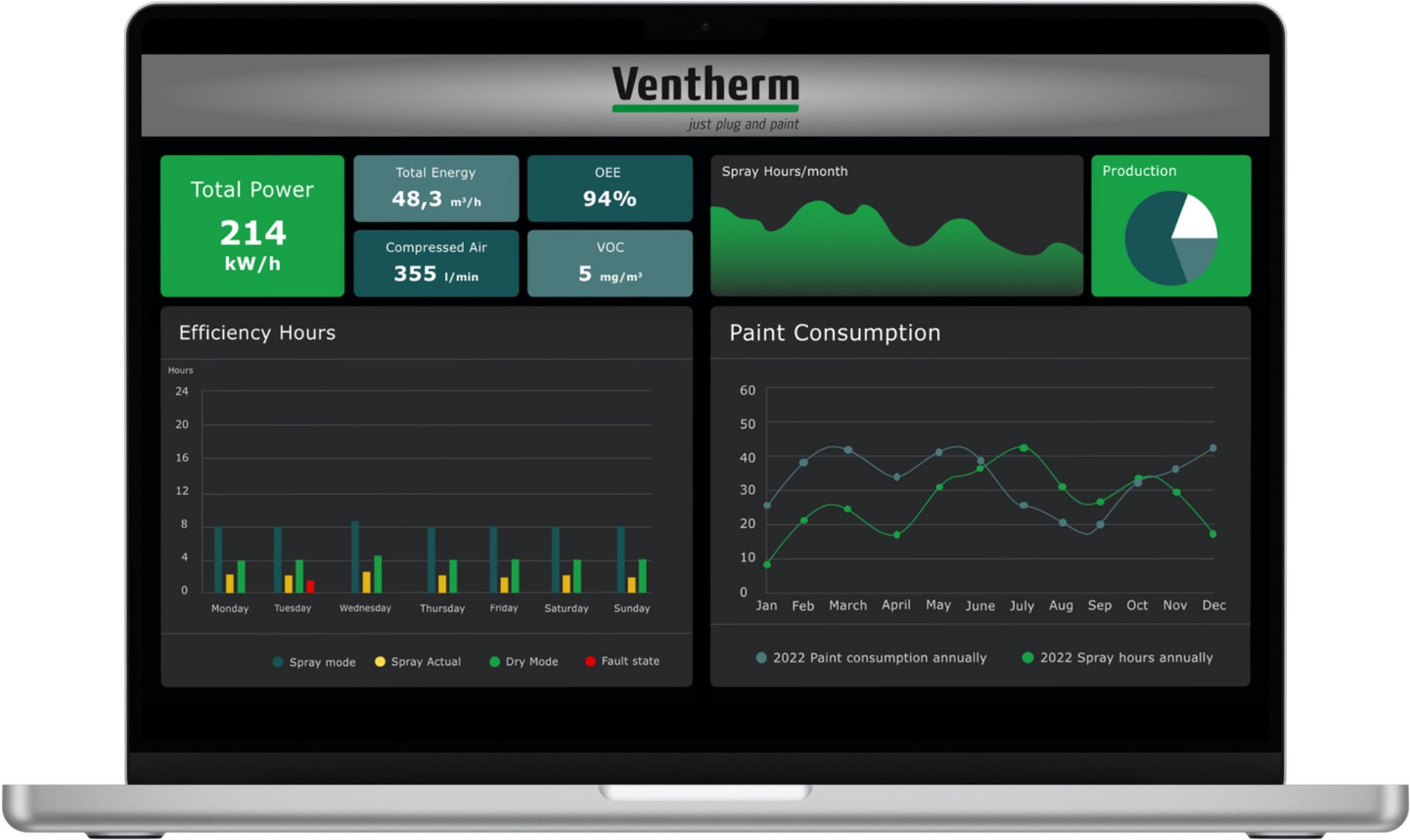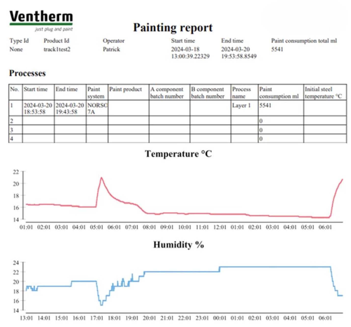 En las instalaciones robotizadas de Ventherm se recogen hasta 8000 puntos de datos que permiten obtener Informes de Pintura a medida de los requerimientos del cliente y de la aplicación.