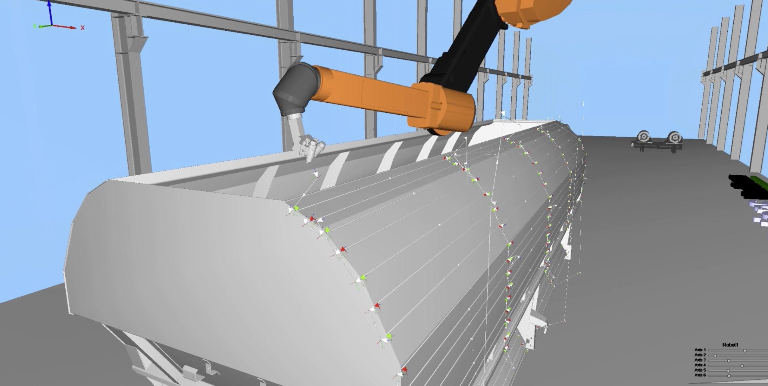 La generación automática del “paint path” garantiza recorridos de chorro óptimos para cada pieza, considerando ángulos, velocidades y presiones de pintura, lo que reduce el consumo de pintura y asegura una calidad superficial uniforme.