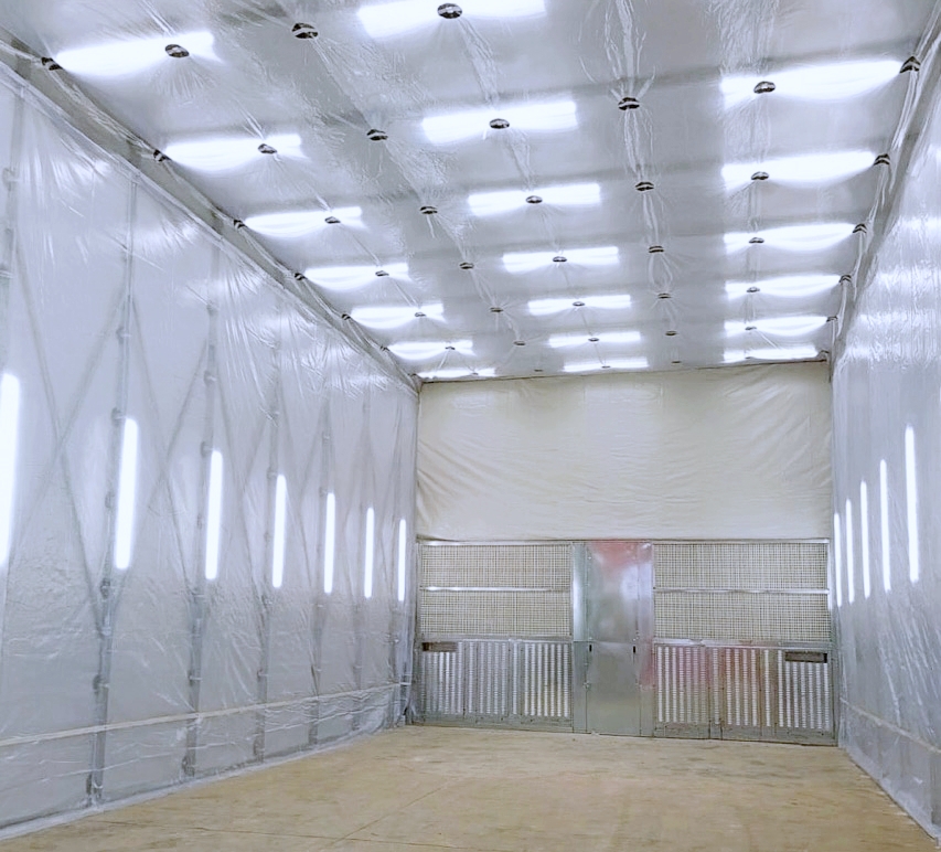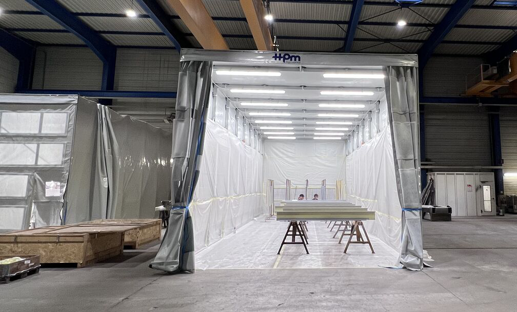 Gracias a su diseño sin obstáculos y estructura abierta, las cabinas extensibles permiten introducir fácilmente piezas voluminosas mediante puente grúa, carretilla o transpaleta. Sin raíles, sin rampas ni limitaciones de altura, son ideales para estructuras complejas, bastidores o componentes de gran tamaño.
