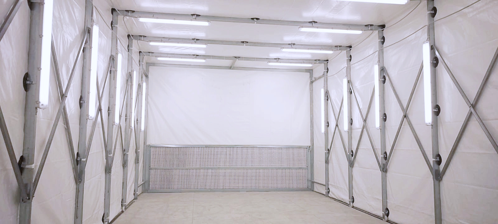 Disponibles en versiones específicas para pintura, chorreado o combinadas, se adaptan a tus necesidades con módulos opcionales de control de temperatura, recuperación de abrasivo, iluminación de alta visibilidad o confort invernal, proporcionando siempre un acceso de 360° a la pieza y una versatilidad logística sin igual.